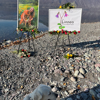 Sonny came into our family’s life in 2018. Here he is on Linnea's graduation day in 2020, then after her death November 2020 he is carrying her memory at her tombstone and at Glacier National Park where Nick repeated her dive 3 years later.